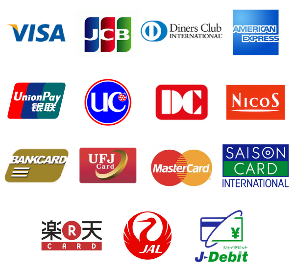 VISA/JCB/American Express/Diner's Club/China UnionPay/UC/DC/NICOS/Bank Card/UFJ Card/Master Card/Saison/rakutencard/JAL/debit card![]() |